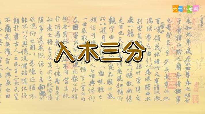 有一次,当时的皇帝要到北郊去祭祀,让王羲之把祝辞写在一块木板上,再派工人雕刻。雕刻的工人在雕刻时非常惊奇,王羲之写的字,笔力竟然渗入木头三分多。他赞叹地说:“右军将军的字,真是入木三分呀!”